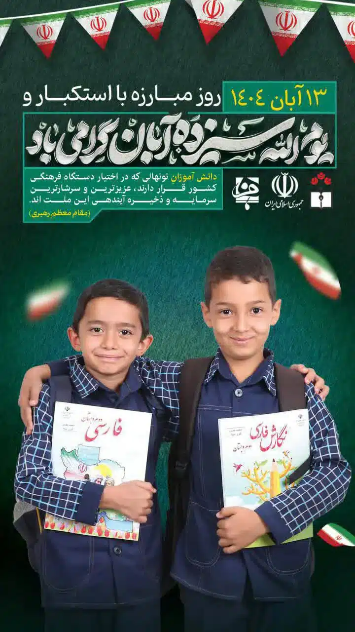 🌹امروز روز شکوه باورهاست 🌱عاشقی را دوباره تمرین کن 🌹سرخ خود را فدایی دین کن 🌱روز زرین دانش آموز اسـت 🌹دانش آموزی آفتابی باش 🌱با تـو ایران بهاری می ماند 🌹پس بمان سبز و انقلابی باش